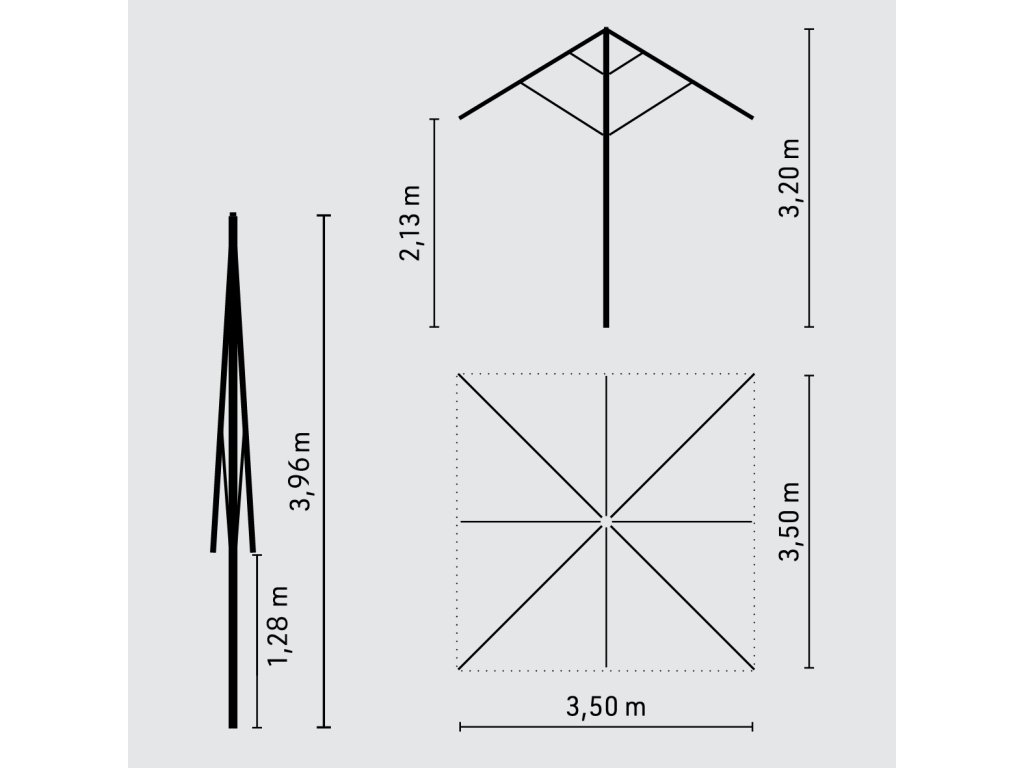 Konstrukčně je slunečník postavený tak, aby vydržel nápor větru 30 km/h. Nechali jsme jej otestovat Leteckým ústavem Praha.