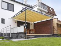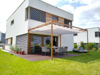 Majitelé rodinných domů si nejvíce oblíbili hliníkové pergoly ZEN HOME s látkovou střechou, bioklimatické hliníkové pergoly a markýzy.