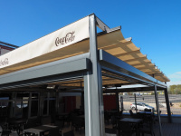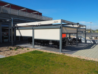 Dobře dostupný stín k letním radovánkám patří. Největší aquapark v Česku jsme zastínili pergolou ZEN Gastro a screenovými roletami IGLOO.