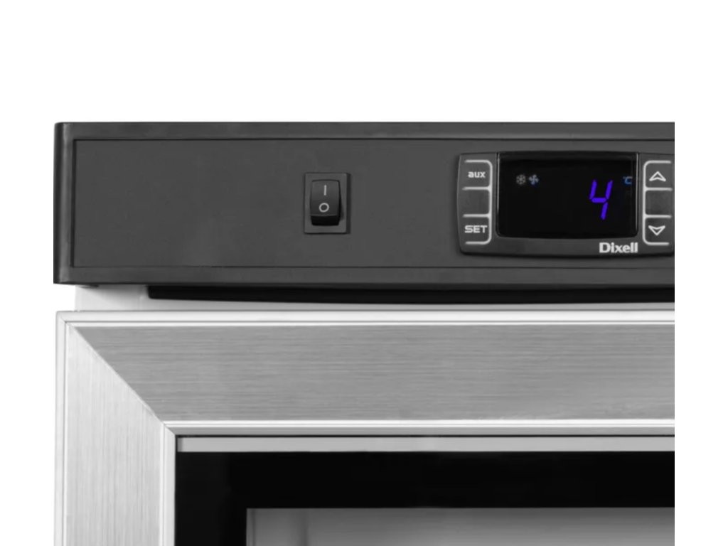 - Přehledná prezentace zboží – prosklené dveře, vnitřní LED osvětlení a nastavitelná police zajistí atraktivní vystavení produktů.