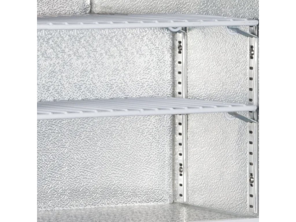 - Flexibilní uspořádání – nastavitelné nožky a dvě roštové police umožňují snadné přizpůsobení pro různé druhy zboží.