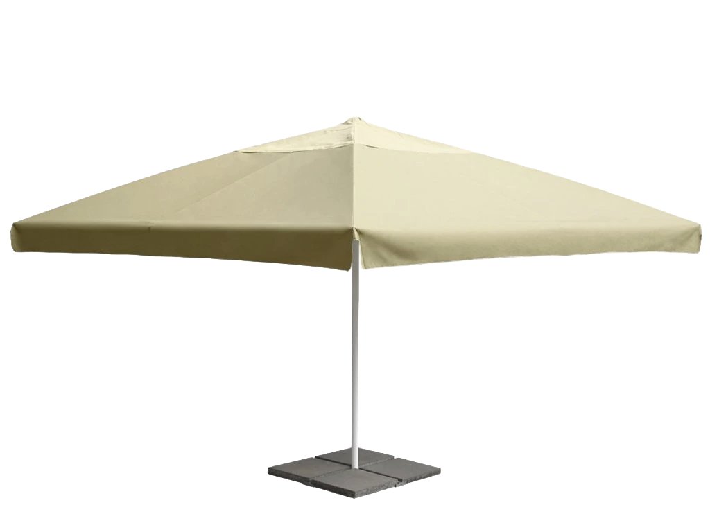 Ke slunečníku doporučujeme zakoupit Kovový dlaždicový stojan CROSS OUT. Stojan zajistěte betonovými dlaždicemi o rozměru 50 × 50 cm, což odpovídá zátěži cca 120 kg (4 × 30 kg). Betony nejsou součástí dodávky.