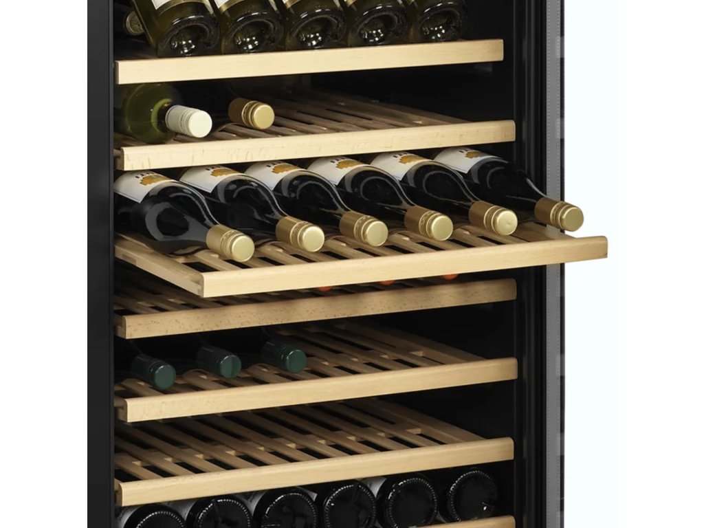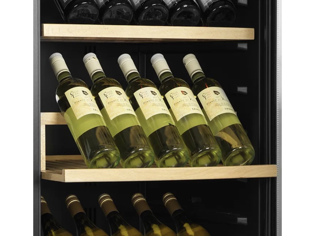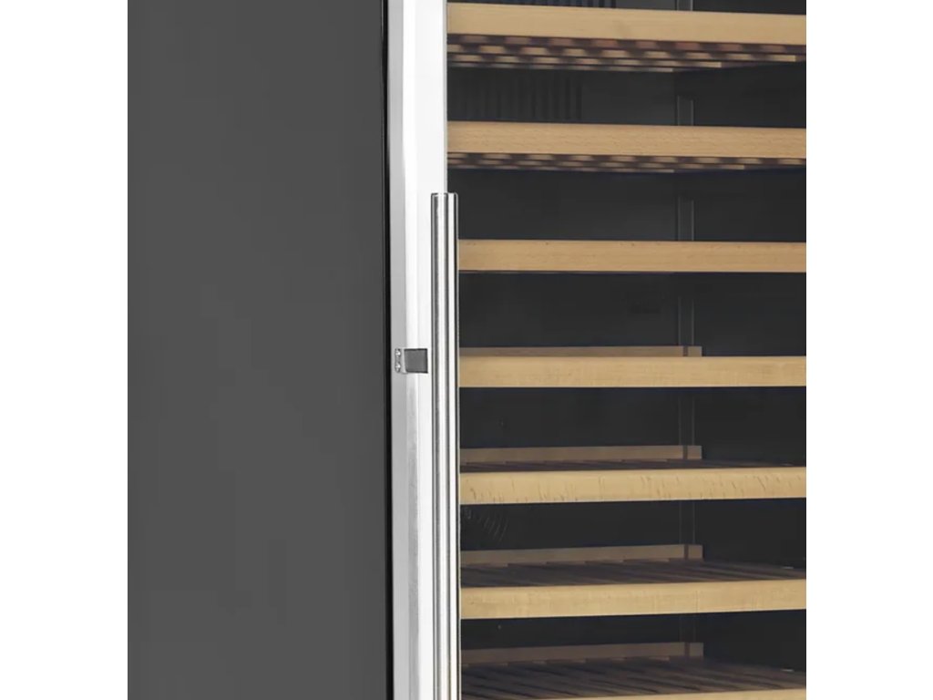 - Velká kapacita – vinotéka pojme až 163 lahví (750 ml) na 14 výsuvných dřevěných policích.